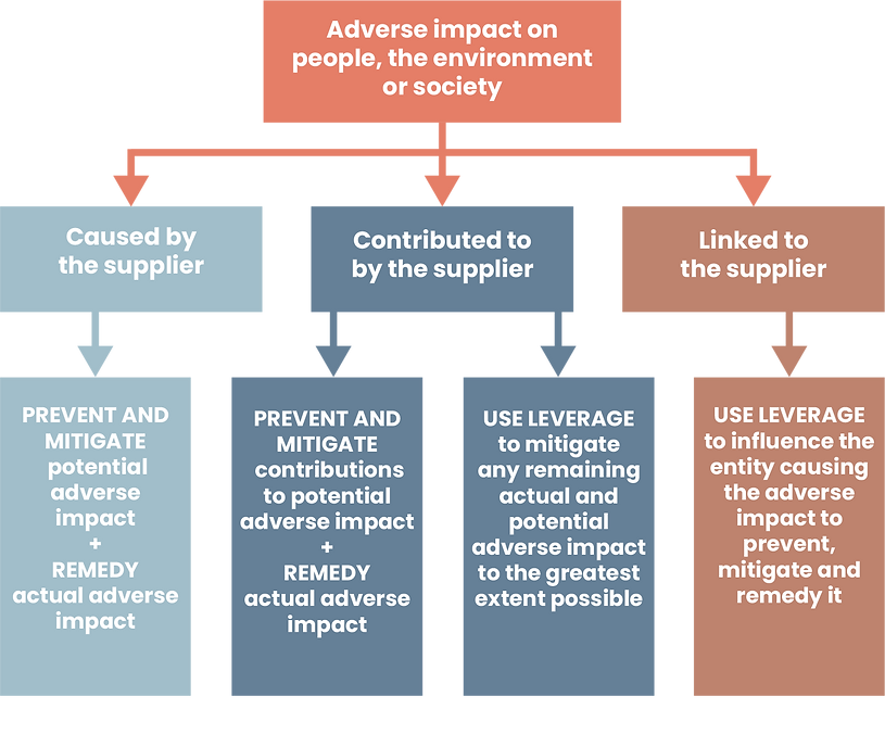 We explain what is included in identifying, assessing preventing, mitigating, and remedying adverse impacts.