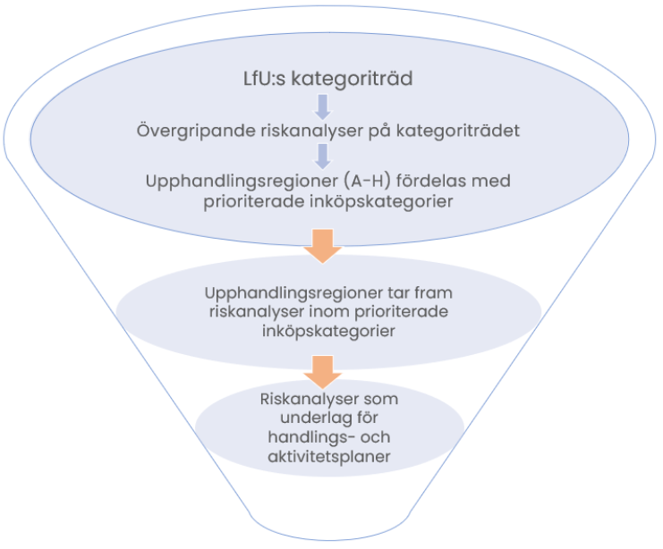 Övergripande riskanalys av upphandlingskategorier, enligt LfU:s kategoriträd, har gjorts i syfte att identifiera prioriterade kategorier utifrån sociala och miljömässiga hållbarhetsrisker samt anti-korruption.