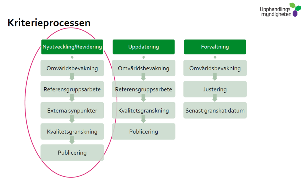 Figur 3 Upphandlingsmyndighetens kriterieprocess Illustration: Upphandlingsmyndigheten.