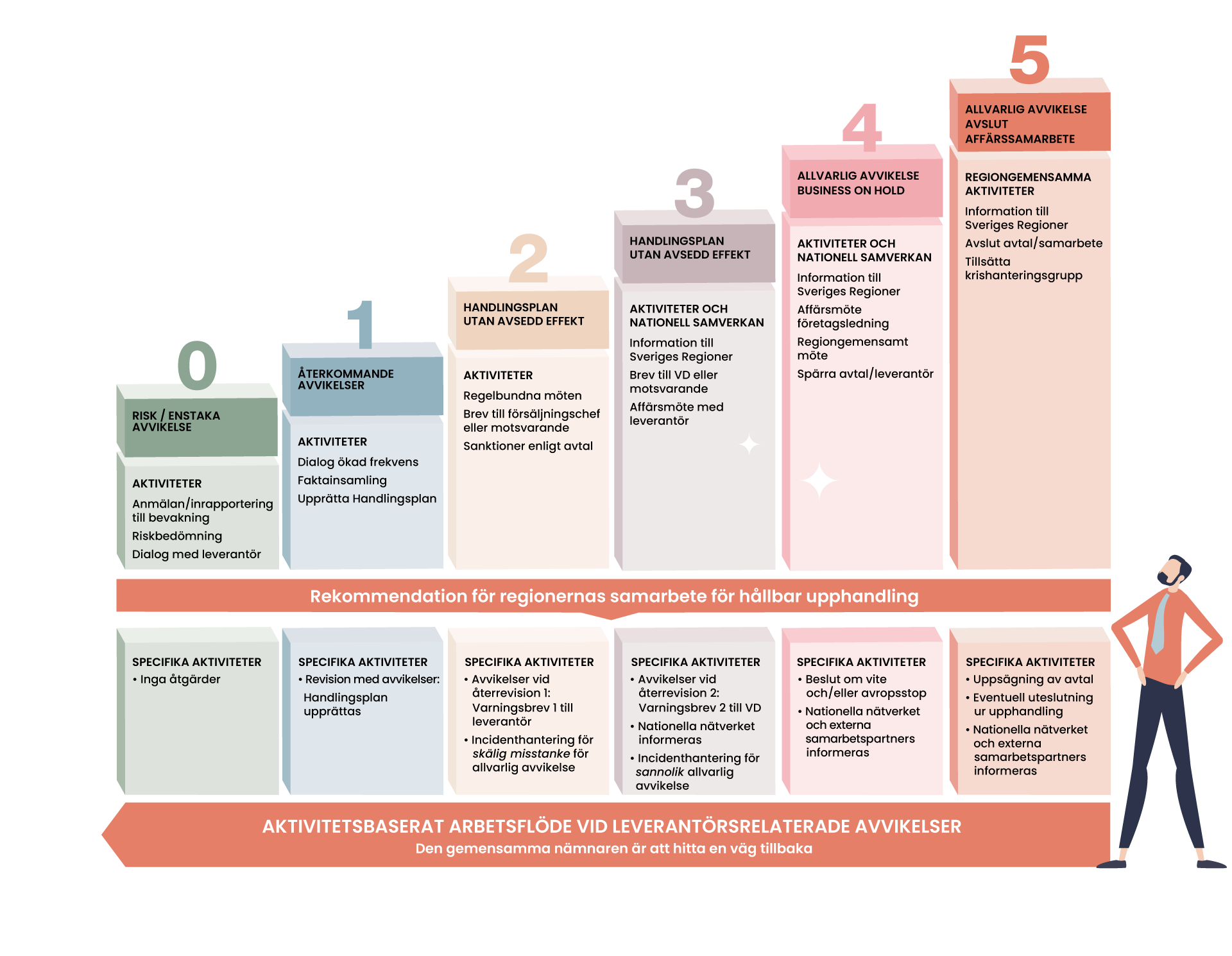 Aktiviteter, steg 3-5, för hantering av leverantörsrelaterade avvikelser inkluderar nationell samverkan.